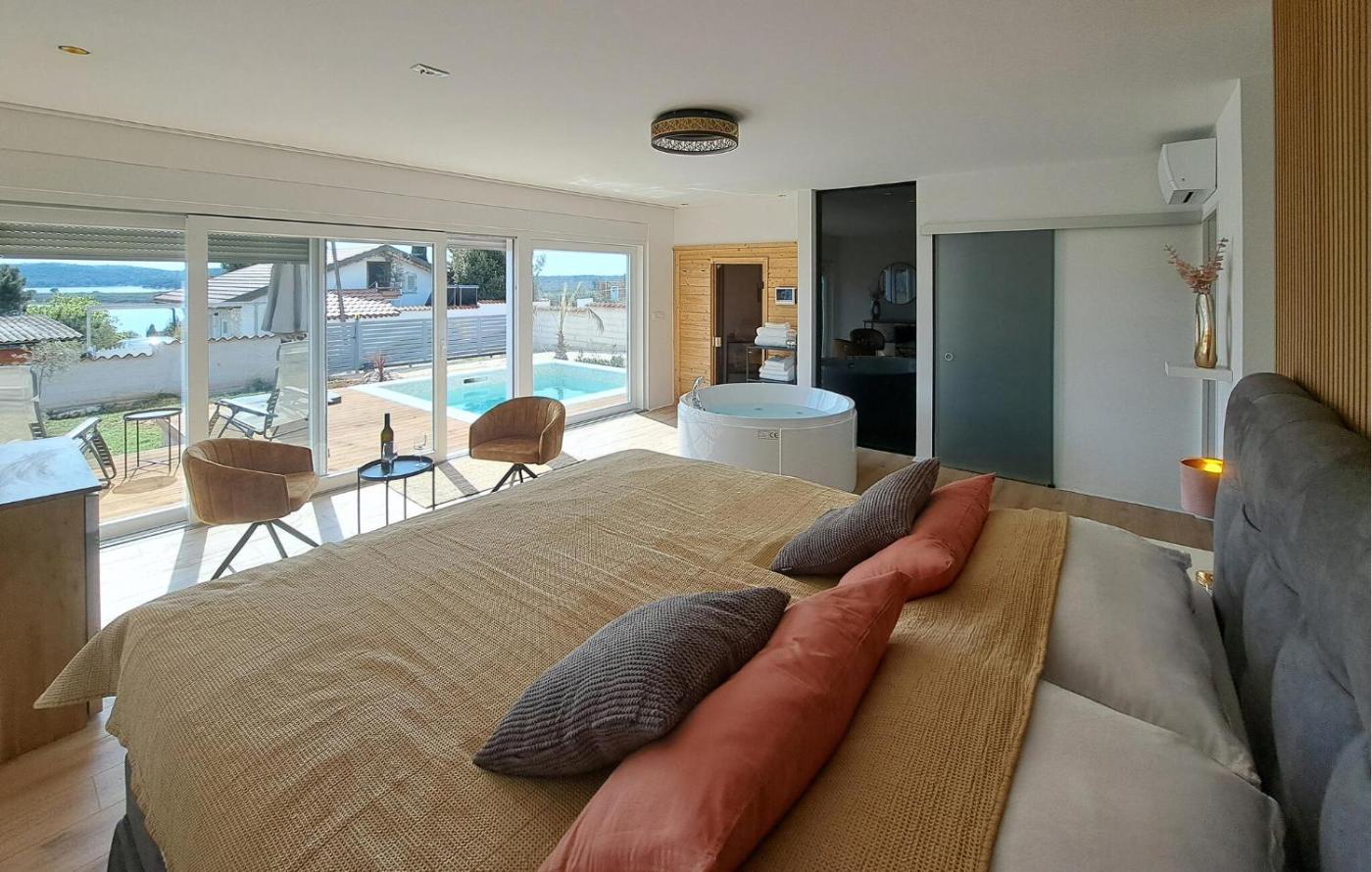 One-Bedroom Holiday Home. This holiday home features a private pool, hot tub and sauna. Boasting a private entrance, this air-conditioned holiday home includes 1 bedroom and 1 bathroom with a shower. Guests will find a stovetop, a refrigerator, a dishwasher and kitchenware in the well-fitted kitchen. The holiday home also features a barbecue. The holiday home offers a TV, a washing machine, a tea and coffee maker, a dining area as well as sea views. The unit has 1 bed.